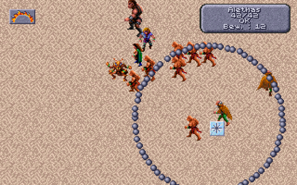 Dark Sun: Shattered Lands erschien 1993 auf dem PC und wurde von den Strategieexperten von SSI entwickelt. Dark Sun ist eine interessante Kampagnenwelt, welche am ehesten einem Endzeitszenario wie z.b. der Fallout Welt ähnelt, nur eben im Fantasy Mittelalter. Während in anderen Welten die Magie aus einem Zwischenreich wie dem Äther oder ähnlichen, nichtweltlichen Orten stammt, müssen die Zauberer von Athas ihre Magie aus der Energie des Planeten und damit aus dem Leben selbst ziehen, um zaubern zu können. Dies hatte über Jahrhunderte zur Folge, dass der Planet kontinuierlich die Energie entzogen wurde, wenn jemand arkane Magie wirkte. Das Ergebnis war katastrophal, im wahrsten Sinne des Wortes: Der Planet verödete mehr und mehr und wurde zur der unbarmherzigen Wüste, wie sie heute ist. Die Magier, welche so rücksichtslos die Magie einsetzen, um sich selbst zu wahren Halb-Göttern zu machen, nennt man Schänder. Sie sind es, welche die wenigen Städte der Welt regieren und ihr Wort ist absolut. Einzigartig ist auch die Anwesenheit von Psionik in der Welt von Athas: Alle intelligenten Geschöpfe, dazu zählen sogar manche Monster, haben psionische Fähigkeiten. So können alle Klassen im Spiel neben den besonderen Talenten ihrer Klasse noch begrenzt Psionik verwenden. Psionik ist im Gegensatz zur Magie nicht aus einer magische Quelle oder von einer Gottheit gewährt, sondern entstammt dem eigenen Wesen der Geschöpfe. Das bedeutet, dass die Attribute des Charakters direkt mit bestimmten psionischen Fähigkeiten gekoppelt ist. So verwendet die Kraft Ballistischer Angriff aus der Disziplin der Psychokinetischen Hingabe die Kondition des Charakters Minus 2, um erfolgreich zu wirken. Bei Verwendung wird also gewürfelt, ob die Fähigkeit wirkt oder nicht. Falls der Wurf gelingt, werden die Grundkosten von 5 Punkten aus dem psionischem Pool des Charakters verbraucht und ein Gegner erleidet Schaden in Höhe von mindestens 1-6 Punkten.