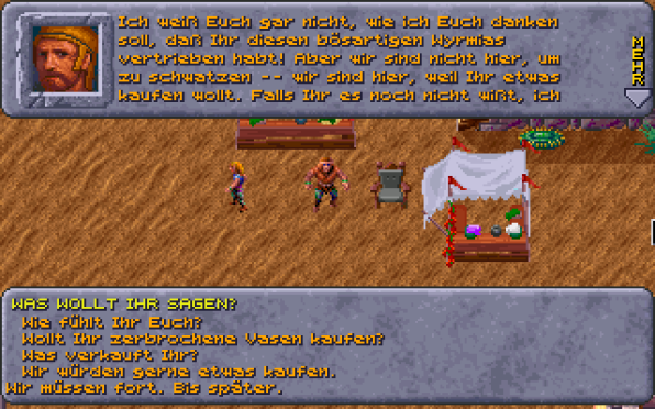 Dark Sun: Shattered Lands besticht durch sein unverbrauchtes Fantasy Settings auf einer Welt in der apokalyptischen Endzeit und seiner ungewöhnlichen Klassen und Rassen. Das überraschend komplexe Magie- und Psioniksystem mit völlig neuen Zaubern und Disziplinen weiß zu begeistern und die Multiple Choice Gespräche, welche teilt sehr lang sein können, erzählen viel mehr über die Welt und die Geschichte, als es die alten Gold Box Spiele konnten. Wer gerne mal eine Welt ähnlich apokalyptisch wie Fallout, aber mit einem Fantasy Setting, ausprobieren wollte, sollte Dark Sun eine Chance geben.