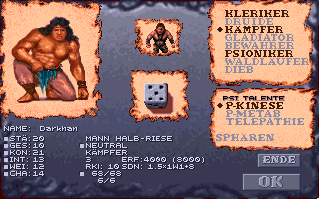 Zu Beginn erstellt man seine 4 Helden, welche aus den Rassen Mensch, Zwerg, Elf, Halb-Elfen, Halblingen, Halb-Riesen, Tri-Kreen und Muls gewählt werden können. Während Menschen, Elfen, Zwerge, Halb-Elfen und Halblingen quasi Fantasystandardkost sind, sieht es bei den anderen Rassen ganz anders aus: Halb-Riesen sind tatsächlich fast so groß wie richtige Riesen, welche gut und gerne 3-4 m groß werden und haben ebenfalls die Stärke ihrer Vorfahren, so dass sie vor allem als Kämpfer in vorderster Front zu gebrauchen sind. Tri-Kreen sind mal wirklich exotische Wesen, welche an ehesten mit Insekten wie Gottesanbeterinnen, nur eben groß wie Menschen, vergleichbar sind. Sie sind alle weibliche Wesen, welche gleich vier Arme haben und sogar ein Gift besitzen, mit denen sie andere Wesen im Kampf lähmen können. Da sie aber völlig anders gebaut sind als der Durchschnittsmensch, können sie auch nicht einfach eine Lederrüstung überbeziehen wie ihre humanoiden Gefährten. Muls wiederrum sind sehr viel humanoider als die anderen, beiden Völker, denn sie sind eine Mischung aus Mensch und Zwerg, dabei aber fast haarlos und dazu immer männlich.